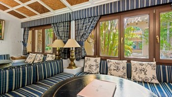 Die Master-Suite ist eine herrlich geräumige Oase mit einem Himmelbett und einem versenkten Jacuzzi, und zwei weitere Schlafzimmer im Haupthaus werden durch eine separate, in sich geschlossene Casita ergänzt. Es gibt auch ein neu gebautes Nebengebäude mit einem fünften Schlafzimmer, eigenem Bad und separatem Eingang, was dies zu einer fabelhaften Wahl für Familien oder Freunde macht. Für größere Gruppen teilt sich das benachbarte La Palmita den gleichen Haupteingang, bietet aber die perfekte Option für mehr Platz. Denen beiden Villen sind wunderschön privat und dennoch eine fantastische Wahl für größere Gruppen von Familien oder Freunden. Eine große Auswahl an Geschäften, Restaurants, Bars und der Strand sind alle leicht zu Fuß erreichbar.