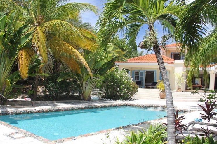 In der Nähe der Küste von Süd-Antigua befindet sich diese wunderschöne karibische Villa direkt am Meer in der Gegend, die vor Ort als Turtle Bay bekannt ist, dem Schildkrötenbrutplatz.