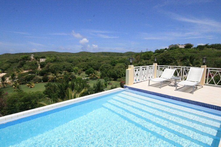 Diese charmante Villa am Meer mit vier Schlafzimmern bietet einen Panoramablick auf das Karibische Meer bis zum Horizont und den Ffryes Strand darunter.