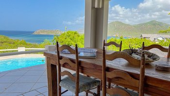Diese malerische und beruhigende Villa im Erdgeschoss in Antigua bietet einen herrlichen Blick über den Pigeon Beach und ist nur wenige Schritte vom Strand und den Annehmlichkeiten entfernt.