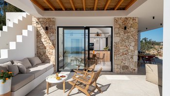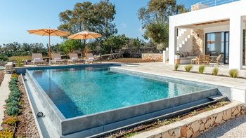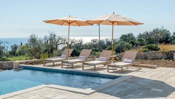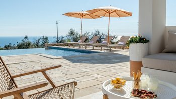 Auf dem Weg nach draußen werden die Gäste vom privaten Infinity-Pool mit malerischem Meerblick beeindruckt sein. Deren umliegende Poolterrasse mit eleganten Sonnenliegen und eingebauten Sitzgelegenheiten für einen Sundowner verfügt über einen schattigen Essbereich im Freien mit einem Grill. Denen Gäste haben auch Zugang zur möblierten Dachterrasse.