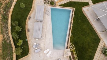 Jedes der sechs Schlafzimmer ist gleich beeindruckend und im gleichen eleganten Stil eingerichtet wie der Rest der Villa. Vier sind sehr geräumig unter ihren individuellen konischen Trullo-Dächern und bieten ein eigenes Duschbad en suite, und das fünfte Schlafzimmer befindet sich unter dem Pool. Zu den weiteren Einrichtungen gehören ein gut ausgestatteter Fitnessbereich und ein Dreh- und Angelplatz, der Spaß für die ganze Familie bietet.