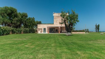 Bei der Ankunft in La Piccola Torre werden die Gäste von den wunderschön gepflegten Gärten und der malerischen Umgebung inmitten farbenfroher Wiesen begeistert sein. Auch das Äußere der Villa ist beeindruckend, mit schönen blaugrünen Fensterläden vor hellem Stein, die typisch für die Masserie in Apulien sind. Deren Innenräume wurden zu einem sehr hohen Standard mit schönen Gewölbedecken und maßgefertigten Möbeln ausgestattet. Ein OFFENER GRUNDRISS Wohnbereich ist wunderschön mit weichen türkisfarbenen Sitzgelegenheiten dekoriert und ein Indoor-Essbereich wird von einer voll ausgestatteten Küche bedient. Zwei fabelhafte Schlafzimmer-Suiten vervollständigen das Erdgeschoss, während das Obergeschoss ausschließlich der Master-Suite gewidmet ist.