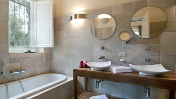 Ein perfekter Ort für ein authentisches italienisches Erlebnis, diese beeindruckende Familienvilla liegt auf einem sechs Hektar großen Grundstück, umgeben von Zäunen und Trockensteinmauern und umgeben von reifen Olivenhainen. Oleanders säumen die Auffahrt zum Haus, wo ein eingezäunter Innenhof mit einem zentralen Brunnen und gewölbten Kreuzgängen und ein geräumiger Außenhof, der für die Privatsphäre vollständig eingezäunt ist, sich auf einen einladenden Infinity-Pool konzentriert. Der Pool befindet sich in einer gepflasterten Sonnenterrasse, die mit Rasenflächen und Kräuterbändern gesäumt ist, und wird von einem großen Pavillon mit schattigen Sitz- und Essbereichen überblickt. Eine Außentreppe führt auf die Dachterrasse, während innerhalb der coolen Steinvilla stilvoll eingerichtete Innenräume drei Doppelzimmer, ein viertes Kinderzimmer und eine offene Küche, Ess- und Wohnzimmer in modernem Monochrom umfassen.