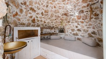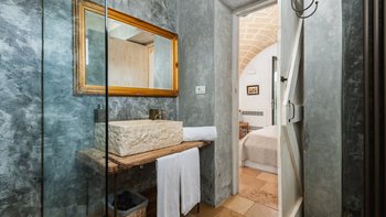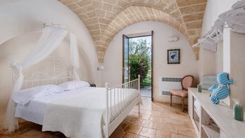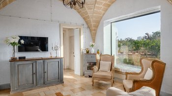 Das Trullo-Schlafzimmer steht nur für 7 Personen zur Verfügung. Bei Belegung von bis zu 6 Personen bleibt es geschlossen. Bitte beachten Sie, dass dieses Zimmer über kein Bad verfügt und daher ein Bad im Haupthaus nutzen muss. Dessen Trullo ist bis zum 17. Mai und ab dem 20. September nicht verfügbar. In diesen Zeiträumen beträgt die Maximalbelegung 6 Personen.