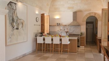 Masseria Ferrantino ist nur eine kurze Autofahrt von Geschäften und einer großartigen Bäckerei in Carpignano entfernt, und preiswerte, familienfreundliche Restaurants gibt es auch in Carpignano und in und um andere Dörfer. In vielen Dörfern finden stimmungsvolle Food-Festivals und Konzerte statt. Schön Sandstrände wie Alimini und Torre dell’Orso mit Strandclubs sind leicht mit dem Auto erreichbar und man kann surfen, kitesurfen, SUP, Kajak fahren. Während der Saison können Tagesausflüge auf Yachten von Otranto aus unternommen werden. Auch Radfahren ist sehr beliebt und Fahrräder (bei Bedarf mit Führern) können gemietet werden. Salento, diese Gegend im Süden Apuliens, ist ein unberührter Teil Südeuropas mit schönen Städten, Dörfern und hervorragenden Restaurants. Zu den interessanten Halbtagesausflügen gehört der Besuch der malerischen Altstadt und der Strände von Otranto und Gallipoli und der prächtigen Barockstadt und der gehobenen Einkaufsmöglichkeiten von Lecce. Zu den umfangreichen Neuerungen der letzten Zeit gehören eine Loggia mit Außensofas, Fitnessgeräten und Freiluftkino, ein eingebauter Grill mit angrenzendem Küchengarten und eine klimatisierte Gartensuite.