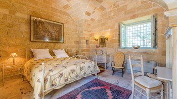 Weit entfernt von seiner abscheulichen Vergangenheit als normannische Festung, war dieses einzigartige und heute einladende Haus auch das Zuhause eines Malteserritters im 17. Jahrhundert. Im Turm selbst, dessen Wände weit über einen Meter dick sind, ist das Wohnzimmer mit Ledersesseln ausgestattet und wird freundlich von einem bronzenen schwarzen Panther bewacht. Mit Gewölbedecken, An einem Ende der gut ausgestatteten Küche hängt ein riesiger Kandelaber aus Schmiedeeisen über einem großen Eichenholz-Esstisch, während die drei Schlafzimmer, jedes mit eigenem Duschbad, mit orientalischen Teppichen und eklektischer Kunst geschmückt sind. Dessen prächtige Hauptschlafzimmer befindet sich auf der oberen Ebene des Anwesens und bietet einen herrlichen Blick über die Landschaft.