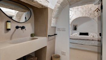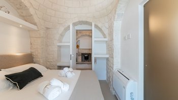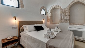 Mit ihren Steinmauern, kegelförmigen Dächern und sorgfältig restaurierten Innenräumen bietet die Villa einen authentischen Geschmack Apuliens und bietet gleichzeitig alle Annehmlichkeiten, die Sie für einen entspannten, stilvollen Aufenthalt benötigen.
