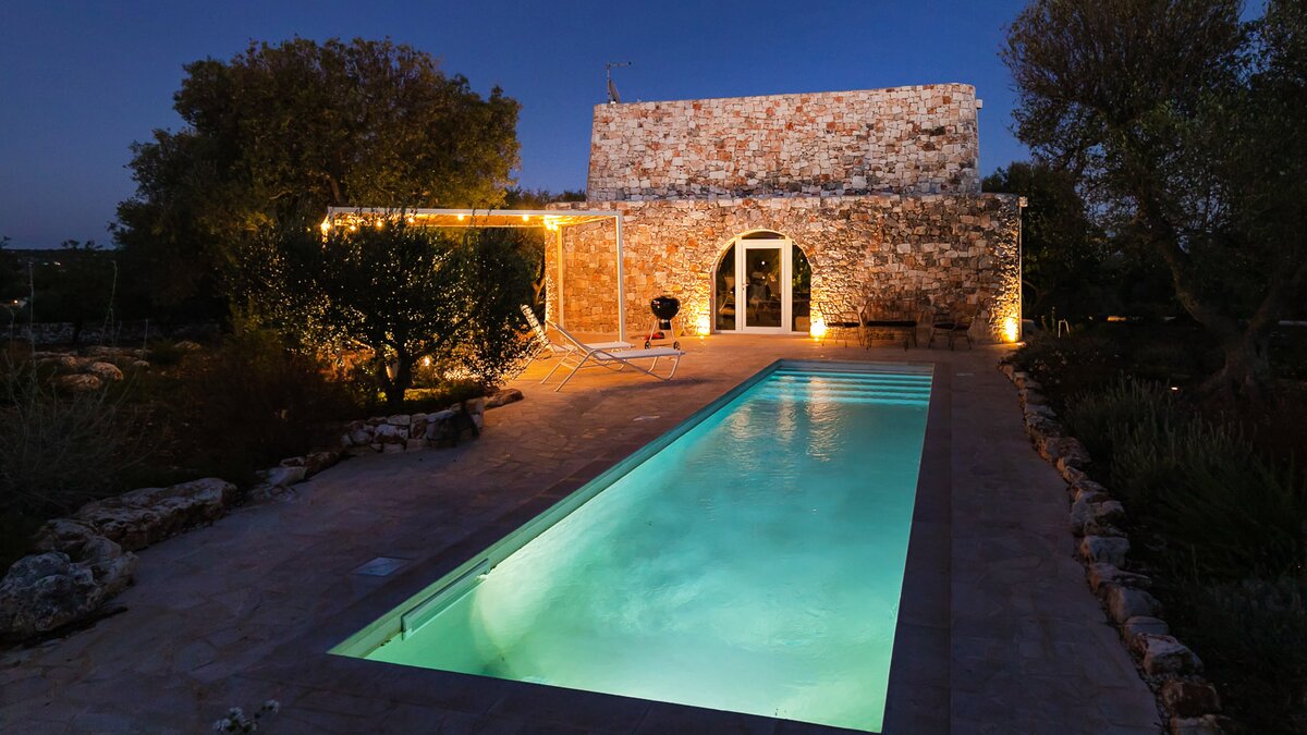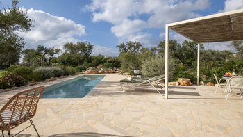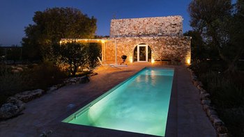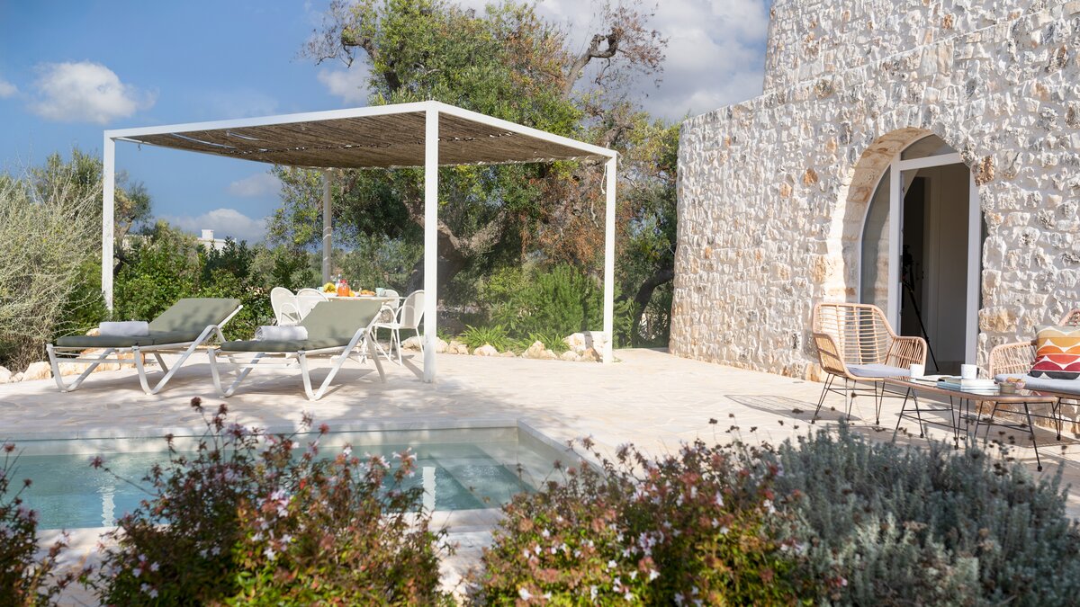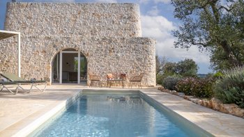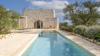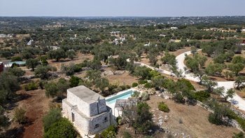 Diese zweihundert Jahre alte Trullo-Villa befindet sich in einem 5 Hektar großen, alten Olivenhain und ist somit der ideale Aufenthalt für jedes Paar, das eine geschmackvolle Inneneinrichtung und eine ruhige Umgebung sucht.