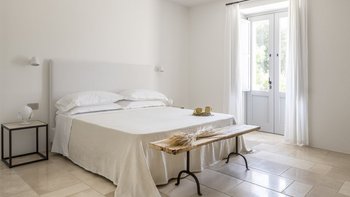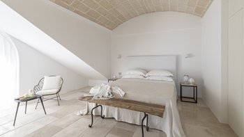 Das Haupthaus verfügt über vier Schlafzimmer mit jeweils eigenem Bad, jedes mit Kingsize-Betten und privaten Terrassen mit direktem Zugang zum Garten. Der Trullo-Gästehaus wurde liebevoll von Handwerkern restauriert und verfügt über ein zusätzliches Schlafzimmer, ein Wohnzimmer mit Kamin und einen privaten Innenhof mit Esstisch und Kamin, ideal für ein Paar, das mehr Privatsphäre sucht.