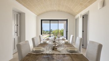 Die Villa Cozzana genießt eine ruhige Lage inmitten von Olivenhainen in der Nähe von Monopoli und bietet einen privaten Ausgangspunkt, um die Küste und die Landschaft Apuliens zu erkunden. Denen Villa verbindet traditionelle apulische Architektur mit modernem Komfort und schafft ein entspanntes und elegantes Ambiente.