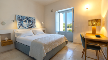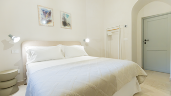 Die Innenräume sind sorgfältig über verschiedene Flügel verteilt. Der Trullo Wing verfügt über zwei Schlafzimmer mit eigenem Bad, die traditionelle Steindetails mit modernem Komfort verbinden. Der Garden Wing umfasst Doppel- und Zweibettzimmer mit Zugang zum Garten, ein eigenes Bad und ein flexibles Studio mit einem Schlafsofa, das den Gästen vielseitige Unterkünfte bietet.