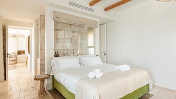 Offering sea views from its various outdoor living spaces, Villa Montemare is a spacious and contemporary villa in Puglia. Set in five acres of land, the villa boasts stylish, modern décor and contemporary architecture. Inside, enjoy an airy kitchen, living and dining space, designed with stylish, minimalist furniture and trendy neutral tones. Each of the villa's three bedrooms are beautifully designed with a super-king size bed, an en suite and access to the terraces. The master bedroom also boasts an in-room bath.