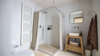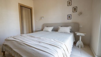 Die Hauptvilla verfügt über drei wunderschön gestaltete Schlafzimmer mit eigenem Bad, die in Marmor und Naturstein ausgeführt sind, wobei zwei Zimmer als Einzel- oder Doppelbetten konfiguriert werden können. Ein geräumiger offener Wohnbereich öffnet sich direkt auf die Poolterrasse, während die moderne Küche komplett ausgestattet ist, um entspannte Familienmahlzeiten oder formellere Mahlzeiten zu ermöglichen. Deren Innenräume verbinden lokale Materialien und Handwerkskunst mit hochwertigem italienischem und internationalem Design, darunter maßgefertigte Stücke für die Villa, Holzbetten überall und Marmorarbeitsplatten sowohl in der Hauptvilla und auch in der Lamia. Deren Küchen sind mit Kochgeschirr von Le Creuset und WMF, Buster + Punch-Armaturen, Samsung-Kühlschrank mit Eiswürfelzubereiter und die Badezimmer sind mit Paffoni-Armaturen ausgestattet. Zu den modernen Annehmlichkeiten gehören moderne Klimaanlagen, Highspeed-WLAN und Samsung Frame-Fernseher mit Netflix und Smart-Home-Kompatibilität.