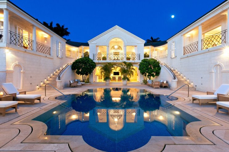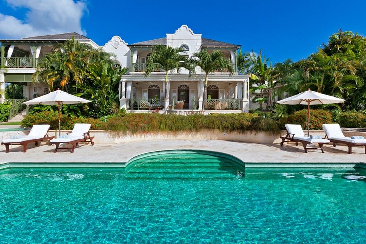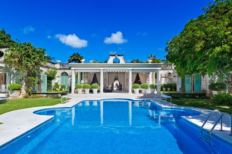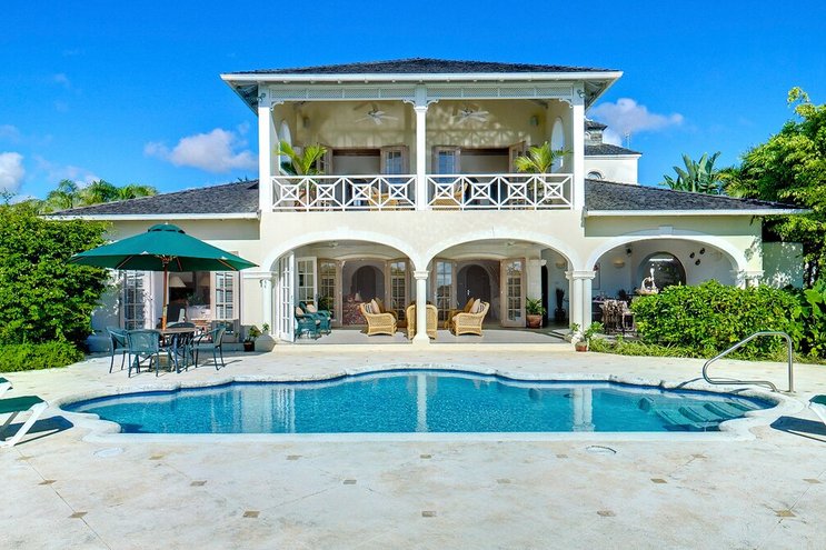 Diese beeindruckende Luxusvilla auf Barbados verwandelt das Leben im Innen- und Außenbereich in eine Kunstform. Sie verfügt über romanische Kreuzgänge, gepflegte Rasenflächen, einen großen Pool und Meerblick von jedem Zimmer.