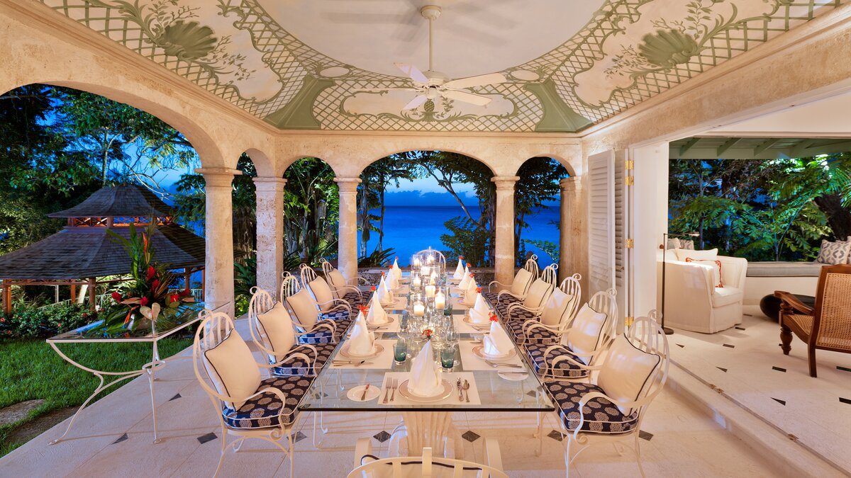 Im Haupthaus können die Gäste im Wohnzimmer entspannen und die Aussicht genießen oder auf der Terrasse speisen, die mit Deckenfresken verziert ist und einen herrlichen Blick auf das Meer bietet. Der Hauptschlafzimmer und 2 weitere Schlafzimmer-Suiten befinden sich ebenfalls im Haupthaus. Ein kurzer Spaziergang über die Brücke, die den natürlichen Wasserlauf durch das Anwesen überspannt, bringt Sie zum Annexe mit Bar, Sitzbereich und 2 Ein-Schlafzimmer-Suiten, und dann weiter auf die Terrasse auf den Klippen am Meer – einer der drei großartigen Bereiche, um im Freien zu speisen, einen Rum-Punsch bei Sonnenuntergang zu trinken oder einfach nachts mit Kerzen zu starren. Von dieser Terrasse aus sind es nur ein paar Schritte bis zum Poolbereich oder die Klippenstufen hinunter zur einsamen Strandbucht. Gegenüber dem Haupthaus befindet sich das Teehaus, in dem sich die 6. Schlafzimmer-Suite befindet. Es gibt auch ein klimatisiertes Heimkino, ein Poolhaus mit 2 Schlafzimmern en suite und den Pavillon mit 2 weiteren Schlafzimmer-Suiten und einem kleinen Fitnessraum.