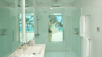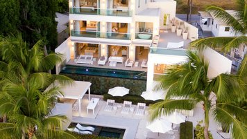 Im Inneren besticht die Villa durch eine harmonische Mischung aus ruhigem, neutralem Dekor und lebendigen Akzenten. Denen offenen Wohnbereiche schaffen einen nahtlosen Übergang zwischen Innen- und Außenbereichen, ideal für Geselligkeit und Entspannung. Jedes Schlafzimmer mit eigenem Bad ist in beruhigenden Farbtönen und eleganten Oberflächen gehalten, wobei die Master-Suite raumhohe Fenster bietet, die einen spektakulären Blick auf das Meer bieten. Denen Gäste können die vielen Annehmlichkeiten der Villa genießen, darunter einen hochmodernen Fitnessraum, einen gemütlichen Kinoraum und einen Weinkühler für besondere abendliche Zusammenkünfte. Deren Dachterrasse mit einem luxuriösen Whirlpool ist der ideale Ort, um die Sterne zu beobachten oder einen Cocktail bei Sonnenuntergang zu genießen.