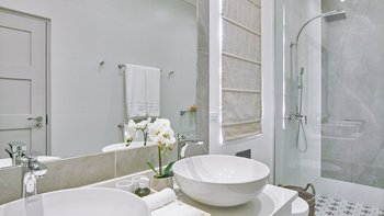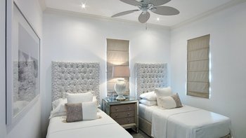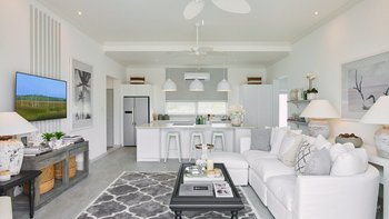 Im Inneren besticht die Villa durch ein modernes Design, das Wärme und Entspannung ausstrahlt. Deren geräumige Wohnbereich mit natürlichem Licht besticht durch eine beruhigende weiße Farbpalette, die die ruhige Atmosphäre unterstreicht. Deren moderne Küche mit Frühstückstheke und Insel lädt die Gäste zu zwanglosen Mahlzeiten oder einem morgendlichen Kaffee ein. Jedes der drei Schlafzimmer wurde sorgfältig für Komfort gestaltet, wobei die Master-Suite Blick auf den Innenhof und den Pool bietet, während die anderen beiden Zimmer gemütliche Rückzugsorte für erholsame Nächte bieten.
