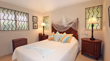 Mit zwei Fensterwänden und Stoffen in sanften Blatttönen fühlt sich das Wohnzimmer fast wie eine coole Gartengrotte an. Dieser ist OFFENER GRUNDRISS zu einem geräumigen Wohn- / Esszimmer mit Türen zur Sonnenterrasse, und das Haus verfügt über zwei Doppel- und zwei Zweibettschlafzimmer, alle klimatisiert und jeweils mit eigenem Bad oder angrenzender Dusche. Gibbs Beach ist fünf Minuten zu Fuß entfernt, und Geschäfte und Restaurants in Speightstown sind fünf Minuten Fahrt entfernt.