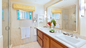 Dieses helle und fröhliche Cottage mit einem Schlafzimmer wurde hell und luftig gehalten, mit Korallensteinwänden, eingelegtem Arvenholz und weißen Rattanmöbeln – alles ergänzt die herrliche Aussicht auf das Karibische Meer. Mit direktem Zugang zum Meer und dem Wohnbereich, der sich komplett zu einer geräumigen, privaten, von Palmen gesäumten Sonnenterrasse öffnet, können Sie erwarten, dass Sie im Leamington Beach Cottage ziemlich viel Leben im Freien verbringen werden. Es gibt ein Riff vor dem Grundstück und einen Sandstrand, ein paar Minuten zu Fuß entweder nach Norden oder Süden.