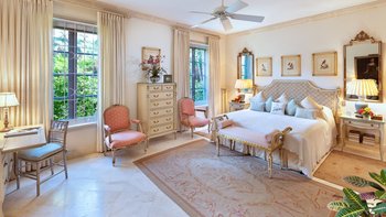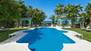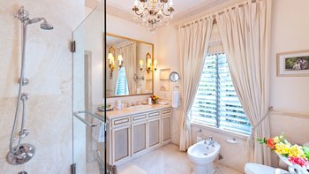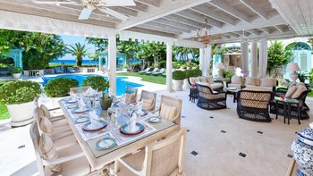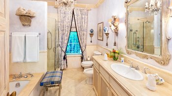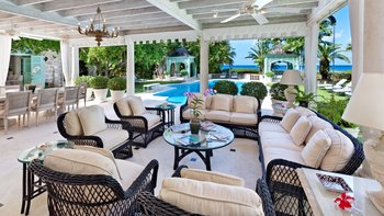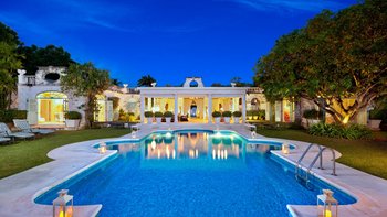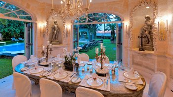 Es ist heute genauso glamourös wie damals, mit einzigartigen Antiquitäten und Kunstwerken, wogenden Vorhängen aus schönen Stoffen, Aubusson-Teppichen auf Marmorböden und einem herrlichen Himmelbett in der Master-Suite. Ein sehr italienisches Wohnzimmer öffnet sich zu einer schattigen Poolterrasse. Der Rokoko-Esszimmer verfügt über klassische Statuen in Wändenischen und einem verspiegelten Marmortisch. Und ein Sommersaal mit Gitterwerk mit großem Fernseher ist in kühlen Pastelltönen gehalten und zum Garten hin offen. Deren ruhige Lage der Villa liegt nur 800 m vom historischen Speightstown entfernt.