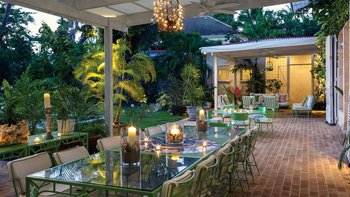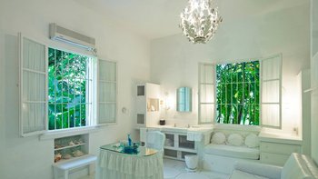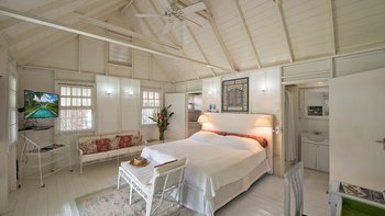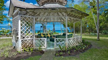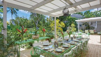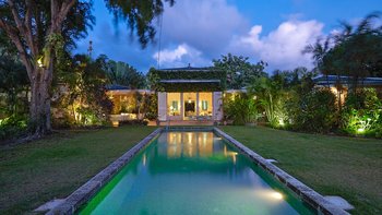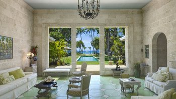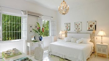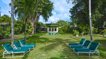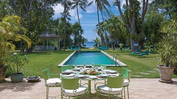 Eine herrliche Familienvilla und ein fotogener Hochzeitsort. Dieser elegante, aber ungezwungene Haus hat Charakter, eine Atmosphäre der alten Welt und romantische Oliver Messel-Design-Elemente, die ihm einen Hauch von Pracht verleihen. Nelson Gay ist eingebettet in weitläufige, gepflegte Gärten, üppiges Grün, das die Privatsphäre der Villa schützt, kühlen Schatten auf der Rasenfläche darunter wirft und sich, nur für kurze Zeit, öffnet, um eine kleine gepflasterte Terrasse auf die weiße Sandküste zu treffen. Perfekt gelegen, um die Aussicht zu genießen, reiht sich der 15 Meter lange Pool mit der kompletten Fensterwand eines Familienzimmers ins Herz des Hauses ein und führt über eine möblierte Terrasse direkt zum Meer. Ein kerzenbeleuchteter Speisesaal in der Villa wird durch einen herrlichen Pavillon in Strandnähe ergänzt, und das ganze Erlebnis wird durch den Kochservice und ein exzellentes Team von Mitarbeitern noch verstärkt. Es gibt fünf Schlafzimmer im Haupthaus und ein wunderschönes Gästehaus auf dem Grundstück beherbergt ein Schlafzimmer mit Doppelbett. Zusätzlich gibt es auch ein Tagesbett im Medienraum und nach Absprache können weitere Gäste in den beiden in sich geschlossenen Chattel-Häusern untergebracht werden, wodurch die maximale Gästezahl auf 18 erhöht wird (gegen Aufpreis).