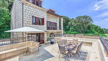 Die Villa Mondrac befindet sich in einer der exklusivsten Lagen an der dalmatinischen Küste und ist ein einladendes Anwesen aus authentischem kroatischem Stein. Deren Villa bietet einen herrlichen Blick auf das Meer von allen drei Etagen, während sie nur wenige Minuten außerhalb von Dubrovnik liegt. Deren Erdgeschoss mit Zugang zur Poolterrasse verfügt über eine moderne Küche, einen Essbereich und ein gemütliches Wohnzimmer mit einem Steinkamin. Deren oberen Stockwerke verfügen über fünf geräumige Schlafzimmer, von denen zwei en suite sind. Deren große Außenterrasse führt auf einen schönen privaten Pool mit Liegestühlen, einem überdachten Sitzbereich und einem Esstisch im Freien. Von hier aus können die Gäste Kroatiens herrliche Sonnenuntergänge genießen oder den vorbeifahrenden Fähren zusehen.