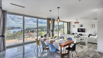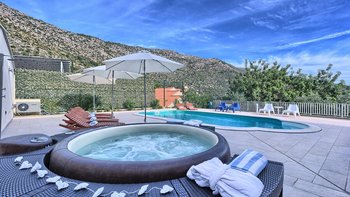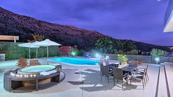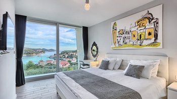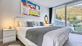 Die Villa Poppy liegt etwas mehr als 1 km vom nächsten Strand entfernt und genießt von ihrer privilegierten Lage in Dubrovnik aus einen herrlichen Meerblick. Dessen moderne Inneneinrichtung zeigt Stil und Komfort gleichermaßen und ist in einer geschmackvollen Farbpalette von kühlen Grautönen und einer Mischung aus Marmorfliesen und grauen Holzfußböden dekoriert. Ideal für große Gruppen. Dessen Layout dieser Villa ist ideal, um im Urlaub Kontakte zu knüpfen, mit einem offenen Wohn- und Essbereich, der bereit ist, die Aussicht zu genießen und von einer modernen Küche serviert wird. Eine lustige Tafelwand enthält nützliche Informationen wie den WiFi-Login und bietet Platz, um Ihren Mitreisenden eine Bewertung zu hinterlassen oder Notizen zu schreiben. Es gibt fünf Doppelschlafzimmer, alle mit eigenem Bad und raumhohen Fenstern, die einen ruhigen Blick auf die Landschaft von Dubrovnik und das Meer bieten. Beginnen Sie Ihren Tag mit einem Training im eigenen Fitnessraum der Villa oder gönnen Sie sich einen Hauch von Verwöhnung in der traditionellen Sauna.