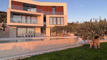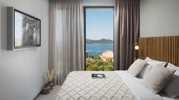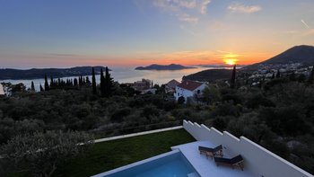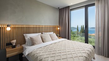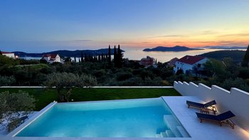 Diese neu erbaute Villa befindet sich über Dubrovnik und bietet herrlichen Meerblick, stilvolle moderne Möbel und einen beheizbaren Infinity-Pool.