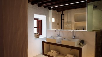 Ca’n La Vida liegt ruhig inmitten üppiger Gärten mit Blick auf Portinatx, dem perfekten Ort für eine abgeschiedene Gruppenreise nach Ibiza. Denen Villa ist im traditionellen Stil gehalten, mit Boutiquen und luxuriösen Akzenten, die für ein zeitloses Ambiente sorgen. Im Inneren befinden sich ein großes Wohnzimmer mit traditionellem Kamin, eine voll ausgestattete Küche und sechs Doppelschlafzimmer, die sich über das Haupthaus und die Cassita verteilen, von denen viele einen fantastischen Meerblick bieten.