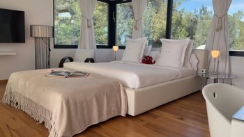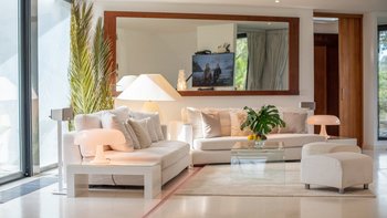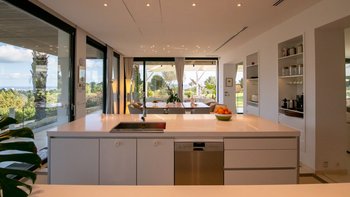 Das helle und luftige Ambiente der Villa wurde sorgfältig gestaltet, um das natürliche Licht, das die Region so großzügig bietet, optimal zu nutzen und jederzeit auf subtile Weise an die natürliche Schönheit der Region zu erinnern. Im Erdgeschoss öffnet sich der elegante OFFENER GRUNDRISS Küchen- und Essbereich direkt auf die Terrasse, wo Sie am Abend unter dem unverwechselbaren Nachthimmel speisen können, der diese Insel so besonders macht. Deren Villa verfügt über zwei geräumige Innen-Lounges mit hohen Decken und raumhohen Glastüren und zahlreiche Unterhaltungsmöglichkeiten, darunter ein 4K-Projektor, eine vier Meter breite Leinwand und erstklassige Audiosysteme. Alle Schlafzimmer im Erdgeschoss verfügen über einen eigenen Gartenbereich, zusätzlich zu den jeweils eigenen Suiten. Im Obergeschoss befinden sich im ersten Stock zwei Kingsize-Suiten, beide mit Panoramablick und direktem Zugang zur Dachterrasse.