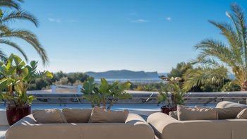 Direkt an der Küste Ibizas gelegen, ist die Finca Tia ein modernes Paradies, ideal, um die Sonne und den atemberaubenden Blick auf das azurblaue Mittelmeer Spaniens zu genießen.