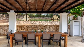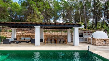 Die Villa Gertrudis liegt ideal in der Nähe von Santa Gertrudis, einem charmanten kleinen Dorf mit schönen Restaurants, Geschäften und Bars. Deren zentrale Lage der Villa macht es zu einem perfekten Ort, von dem aus man die Insel in alle vier Himmelsrichtungen erkunden kann. Dessen Haus ist eine perfekte Kombination aus typisch ibizenkischer Architektur, kombiniert mit modernem Komfort und Design. Deren Mittelpunkt des Hauses, um lange Sommertage zu genießen, ist der atemberaubende Poolbereich. Deren Pergola am Pool beherbergt einen komfortablen Sitzbereich im Freien sowie einen Esstisch im Freien, der Platz für bis zu 10 Personen bietet. Deren Außenküche mit Grill, Herd und Kühlschrank vervollständigt diesen Raum und macht es zum perfekten Ort für den ganzen Tag zum Faulenzen und Essen und. Es gibt einen Garten im andalusischen Stil mit Orangenbäumen und einem Wasserbrunnen, der sich ideal für einen Aperitif eignet, während man den Vögeln lauscht. Ein wunderschönes balinesisches Haus auf der anderen Seite des Grundstücks lädt die Gäste zu einer „Siesta“ im Schatten ein. Es gibt auch einen schönen Obstgarten mit verschiedenen Obstbäumen, die frisches Obst liefern, das die Gäste während der Saison genießen können.