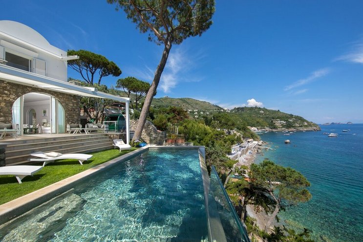 Divinomare ist eine Villa mit sechs Schlafzimmern in Marina del Cantone mit einem Infinity-Pool, malerischen Terrassen und direktem Zugang zur faszinierenden Küste Süditaliens.