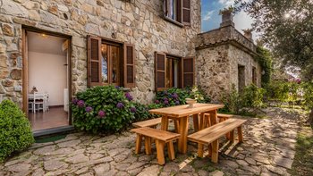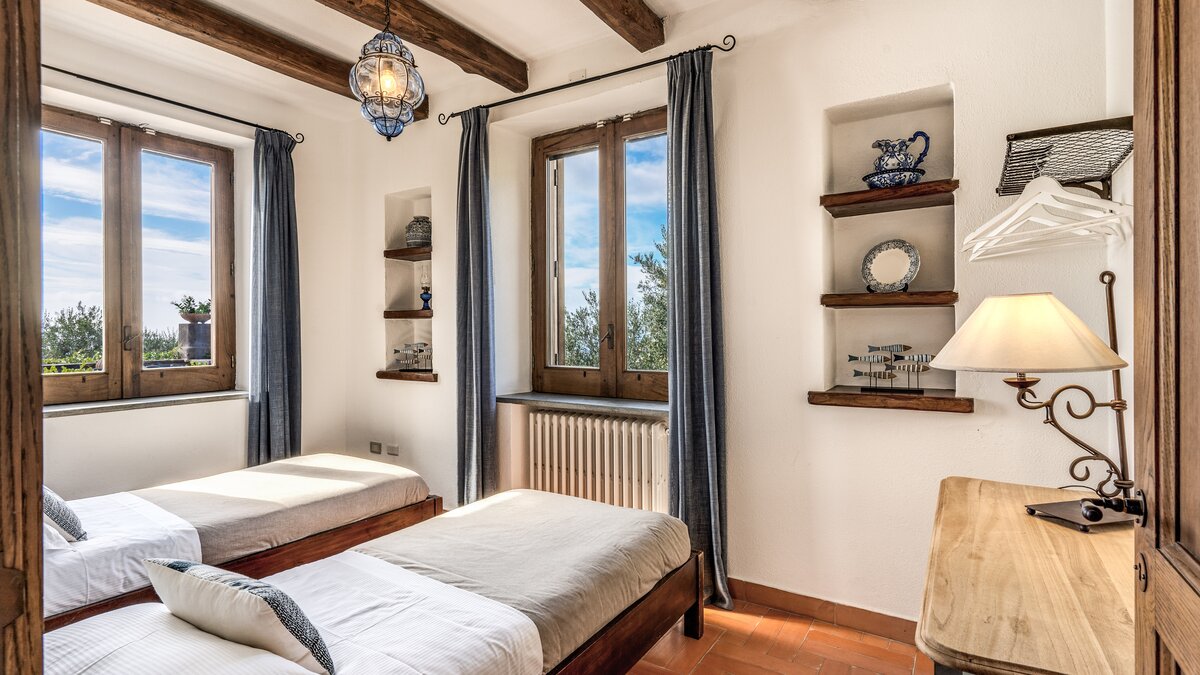 Im Inneren der Villa sind durchdachtes Design und akribische Liebe zum Detail an jeder Ecke erkennbar. Deren Hauptvilla wurde im schönen 'italienischen zeitgenössischen Stil renoviert. y. Deren Hauptküche ist ideal für Kochkurse und im Obergeschoss und befinden sich drei wunderschön gestaltete Schlafzimmer, die sich zu Balkonen an der Vorderseite des Anwesens öffnen. Ein viertes Schlafzimmer in diesem modernen Stil befindet sich auf der Rückseite. Diese modernen Schlafzimmer werden durch zwei weitere rustikale Nebengebäude ergänzt. Deren erste ist von der Rückseite des Anwesens zugänglich und hat Zugang und zu seiner eigenen großen Panoramaterrasse. Deren zweite ist von der Seite des Anwesens aus zugänglich und verfügt über ein Sitz- und Wohnzimmer mit malerischem Panoramafenster mit Blick auf die Gärten. Das vierte Nebengebäude ist eine moderne Gartensuite mit einem Schlafzimmer. Denen Schlafzimmer werden durch einen fantastischen Wohn- und Essbereich im Freien mit einzigartiger runder Barbecue-Werbung und Pizzaofen ergänzt, der sich perfekt zum gemeinsamen Essen eignet. M Der weite Blick auf das Meer und die nahe gelegenen sanften Hügel verwandelt alltägliche Momente im L’Antica Torre in filmische Erinnerungen und fängt die Essenz des authentischen italienischen Landlebens ein.