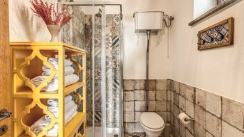 Das Äußere der Villa entfaltet sich wie ein Meisterwerk in mediterranen Farbtönen. Der private Pool befindet sich zwischen sorgfältig positionierten Liegen und bietet einen Blick auf das Meer, das sich bis in die Unendlichkeit erstreckt. Denen Terrassen und die umliegenden Gärten bieten unterschiedliche Umgebungen – in einem Moment intim, im nächsten weitläufig – perfekt für ein verweilendes Abendessen, spontane Gespräche oder ruhige Betrachtung. Deren Villa verfügt auch über eine ausgezeichnete Lage. Ein gutes Restaurant ist 700 m entfernt (die letzten 300 m bergauf auf dem Rückweg!) und liegt nur sieben Kilometer vom kristallklaren Wasser der Bucht von Nerano, fünfzehn von den dramatischen Klippen von Positano und zwölf vom pulsierenden Herzen von Sorrento entfernt.