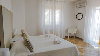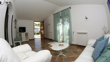 Im Erdgeschoss befinden sich ein gemütliches Wohnzimmer, eine gut ausgestattete Küche mit einem Esstisch für 6 Personen und ein Schlafzimmer. Im ersten Stock befinden sich zwei weitere Schlafzimmer mit französischen Fenstern, die auf eine Terrasse führen, die von einer Pergola mit einem Sitzbereich im Freien beschattet wird und einen atemberaubenden Meerblick bietet. Unser Team würde auch empfehlen, ein kleines Auto zu mieten, um die Umgebung mit ihren kurvenreichen Straßen zu erkunden, da die Zufahrt zur Villa nur über eine schmale Straße erfolgt, die nicht für große Fahrzeuge geeignet ist.