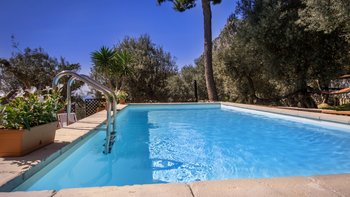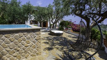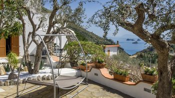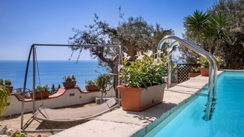 Die bezaubernde Villa Celeste genießt einen atemberaubenden Meerblick von seiner erstklassigen Lage über der Bucht von Marina del Cantone, südlich von Sorrento, und ein erhabener Privater Pool.