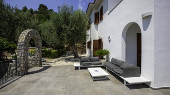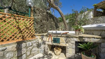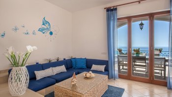 Das Innere der Villa ist kühl und komfortabel. Der OFFENER GRUNDRISS Wohnbereich ist in neutralen Farbtönen mit geschmackvollem Dekor in Blautönen gehalten, um die Umgebung der Villa zu betonen. Es gibt ein bequemes Sofa und einen großen Fernseher mit Sky sowie einen voll ausgestatteten Küchenbereich. Ein separates Esszimmer bietet den Gästen die Möglichkeit, insgesamt drinnen zu speisen. Aller vier komfortablen Schlafzimmer rund um die Villa verfügen über einen eigenen Blick auf Sorrent. Dessen separate Nebengebäude bietet eine zusätzliche kleine Küche, eine Frühstücksbar, einen Wohnbereich und ein Schlafzimmer mit eigenem Bad mit Balkon.