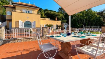 Erleben Sie authentischen italienischen Charme und einen atemberaubenden Blick auf die Küste in der Villa Fiordaliso, einem ruhigen Rückzugsort in Sant’Agata sui Due Golfi.