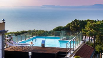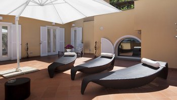 Zur Entspannung bietet die Villa einen Wellnessbereich mit einem Türkischen Bad, einer Farbtherapie-Dusche und einem Gästebad. Deren Panoramaterrasse ist ein perfekter Ort, um zu entspannen und die atemberaubende Aussicht zu genießen.