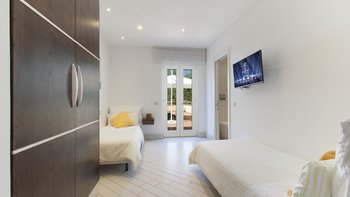 Auf der zweiten Etage befinden sich drei geräumige Doppelschlafzimmer und ein Zweibettschlafzimmer, die jeweils mit eigenem Bad mit Dusche ausgestattet sind. Im Erdgeschoss befindet sich ein Schlafzimmer mit Doppelbett und ein externes Bad, ideal für diejenigen, die zusätzliche Privatsphäre wünschen. Aller Zimmer sind mit modernen Annehmlichkeiten wie Klimaanlage, Heizung, WLAN, Satellitenfernsehen, Begrüßungssets und täglichem Reinigungsservice ausgestattet.