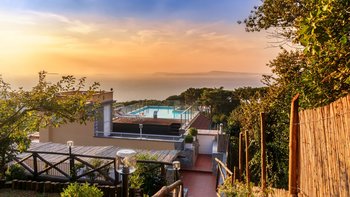Die von Gärten umgebene Villa Fiordaliso bietet einen atemberaubenden Blick auf den Golf von Neapel und die Inseln Capri, Ischia und Procida. Umgeben von üppigen Gärten bietet diese Villa eine ruhige und erholsame Umgebung, ideal für einen ruhigen Urlaub.
