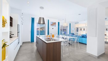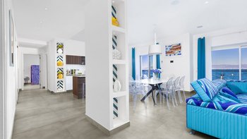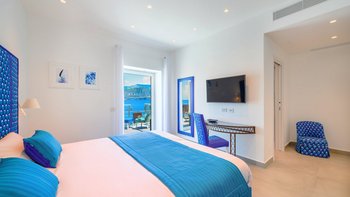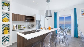 Die Villa befindet sich auf einer Ebene und bietet Platz für bis zu acht Personen in vier Schlafzimmern mit eigenem Bad, jeweils mit flexiblen Kingsize- oder Twin-Betten, Klimaanlage und direktem Zugang zur Terrasse oder zum Garten. Der offen geschnittene Wohn- und Essbereich verfügt über stilvolle Möbel, einen Smart-TV und eine gut ausgestattete OFFENER GRUNDRISS Küche, die sich auf eine Terrasse mit Meerblick öffnet – nur wenige Schritte vom kristallklaren Wasser entfernt.