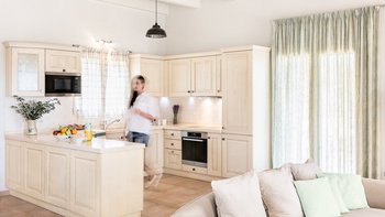 Im Außenbereich können Sie die Aussicht vom Poolbereich mit Liegestühlen, Tischen und Stühlen genießen. Ob Sie Sonne oder Schatten wünschen, die Villa Asteri hat Sie mit zwei Außenbereichen bedeckt, einer komplett mit eingebautem Grill, Spüle und Vorratsschränken.