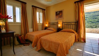 Lyra hat einen Panoramablick auf das Meer und die Insel Ithaca an der Vorderseite und einen wunderschönen Blick auf die Landschaft auf der rechten Seite. Draußen hat die Poolterrasse einen schattigen Essbereich und einen Infinity-Pool, und im Inneren die voll ausgestattete Küche, Esszimmer und Wohnzimmer sind ideal für einen erholsamen Urlaub für Paare, Familien oder Freunde. Es gibt auch ein Duschbad im Erdgeschoss und im Obergeschoss und befinden sich zwei Schlafzimmer, ein Doppel- und Zweibettzimmer, beide mit Dusche en suite und privaten Balkonen. Denen stilvollen Restaurants, Cafés und Bars von Fiscardo sind nur einen kurzen Spaziergang von der Villa entfernt und es gibt Kiesstrände innerhalb von 2 km. Lyra teilt sich das Anwesen mit seinen Schwestervillen, Yolanda und Deliaund die für größere Gruppen zusammen gebucht werden können.