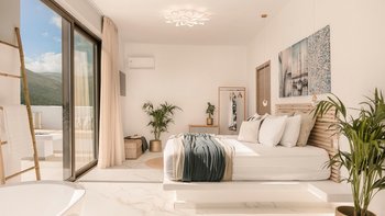 Beim Betreten werden Sie von einem geräumigen und geschmackvoll eingerichteten Interieur begrüßt, das Raffinesse und Stil ausstrahlt. Eine voll ausgestattete Küche ermöglicht es den Gästen, kulinarische Wunder zu erleben, während ein geräumiger, offen geschnittener Wohnbereich den idealen Ort bietet, um vor einer majestätischen Bergkulisse Kontakte zu knüpfen. Denen fünf wunderschön eingerichteten Schlafzimmer bieten jeweils eine Oase der Ruhe und Entspannung. Von weichen Betten bis hin zu modernen Möbeln wurde jedes Detail sorgfältig ausgewählt, um den Gästen den größtmöglichen Komfort zu gewährleisten. Deren Hauptschlafzimmer verfügt über eine offene Badewanne und einen unvergleichlichen Meerblick für einen idyllischen Start in den Tag.