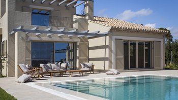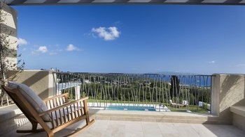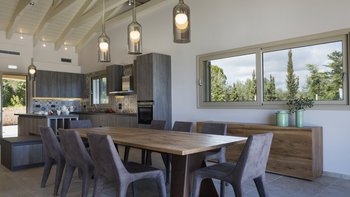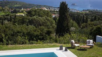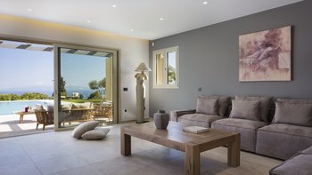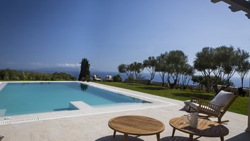 Philoxenia ist eine elegante und moderne Immobilie in idyllischer Lage. Deren Hauptvilla erstreckt sich über drei Stockwerke, wo sich im Erdgeschoss eine voll ausgestattete moderne Küche, ein geräumiges Wohnzimmer und das erste Schlafzimmer mit Doppelbett en suite befinden. Treten Sie nach draußen, um den „pièce de resistance“ zu entdecken: einen unglaublichen Pool, eine geräumige Terrasse und ein atemberaubender Blick auf das Ionische Meer. Im ersten Stock befinden sich zwei weitere Schlafzimmer, ein Doppel- und Zweibettzimmer, die beide en suite sind und zu einer Terrasse für weitere bemerkenswerte Ausblicke öffnen. Deren untere Erdgeschoss ist ausschließlich von einem Fitnessraum belegt, während in einem Nebengebäude das letzte Schlafzimmer mit Doppelbett en suite mit einer zweiten Küche und einem Wohnzimmer untergebracht ist.