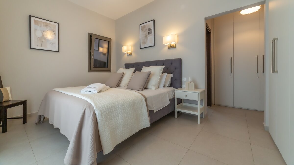 Im Obergeschoss befinden sich drei stilvolle Schlafzimmer mit luxuriösen Kingsize-Betten, eigenem Bad und viel Stauraum im Kleiderschrank. Zwei der Zimmer öffnen sich auf einen eigenen Balkon mit Blick auf das Meer und die Gärten. Dessen viertes Schlafzimmer befindet sich im Erdgeschoss und ist ideal für Gäste, die lieber Treppen vermeiden möchten.
