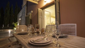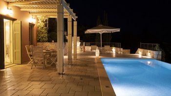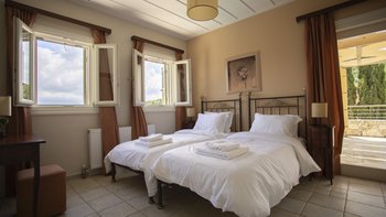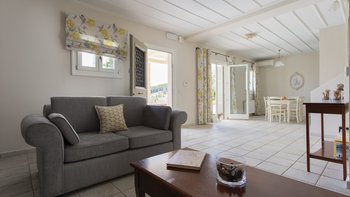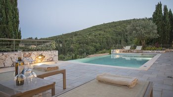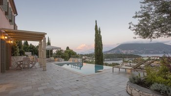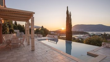 Yolanda genießt eine erstklassige Lage am Stadtrand von Fiscardo, mit herrlichem Blick über den Hafen in Richtung Ithaka und nur 150 m von den herrlichen Restaurants, Geschäften und Cafés am Wasser von Fiscardo entfernt. Yolanda ist traditionell und einfach im Stil, aber der Panoramablick von der Infinity-Poolterrasse über die Bucht von Fiscardo ist unvergesslich. Eine ideale Aufteilung für zwei Paare oder eine Familie, ein Zweibett- und ein Hauptschlafzimmer befinden sich im ersten Stock, beide mit Dusche en suite und eigenem Balkon. Im Erdgeschoss befindet sich eine offene Grundriss Küche, ein Wohnzimmer und ein Essbereich mit Zugang zur Poolterrasse mit Esstisch im Freien, und ein separates Duschbad ist ideal für die Nachschwimmduschen. In dieser Villa gibt es keine Notwendigkeit für ein Auto zu mieten, da es zahlreiche Restaurants in Fiscardo und Emblisi Strand und Foki Strand sind weniger als 2 km vom Haus entfernt. Yolanda teilt sich das Anwesen mit seinen Schwestervillen Delia und Lyra, die für größere Gruppen zusammen gebucht werden können.